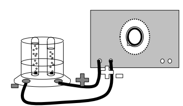 - Prøv at sætte et voltmeter til elektrolysekaret, mens der sidder bobler på elektroderne.